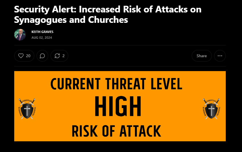 Click to on picture below to View Christian Warrior Training Threat Level Analysis, October 2024, condition RED!!, briefly to yellow, back to RED in 2025.